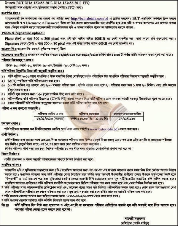 2013-14, BUTEX Admission 2013 Admit Card Download, BUTEX Admission Circular